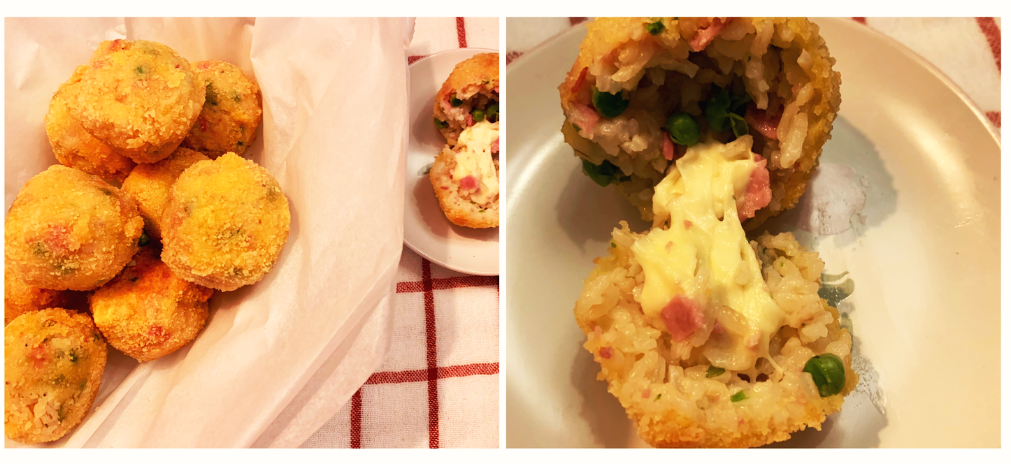 정통 레시피라고 따로 알려진 게 있을 수 없는 요리지만 그래도 시칠리아식 아란치니에 자주 등장하는 완두콩과 모짜렐라 치즈도 넣고, 밥도 리조토 스타일로 따로 지어서 만들어보자 !