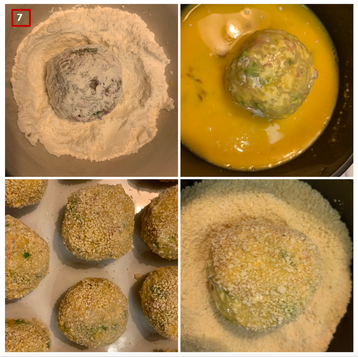 7. 밀가루 > 계란 > 빵가루 순으로 튀김옷을 입혀준다.