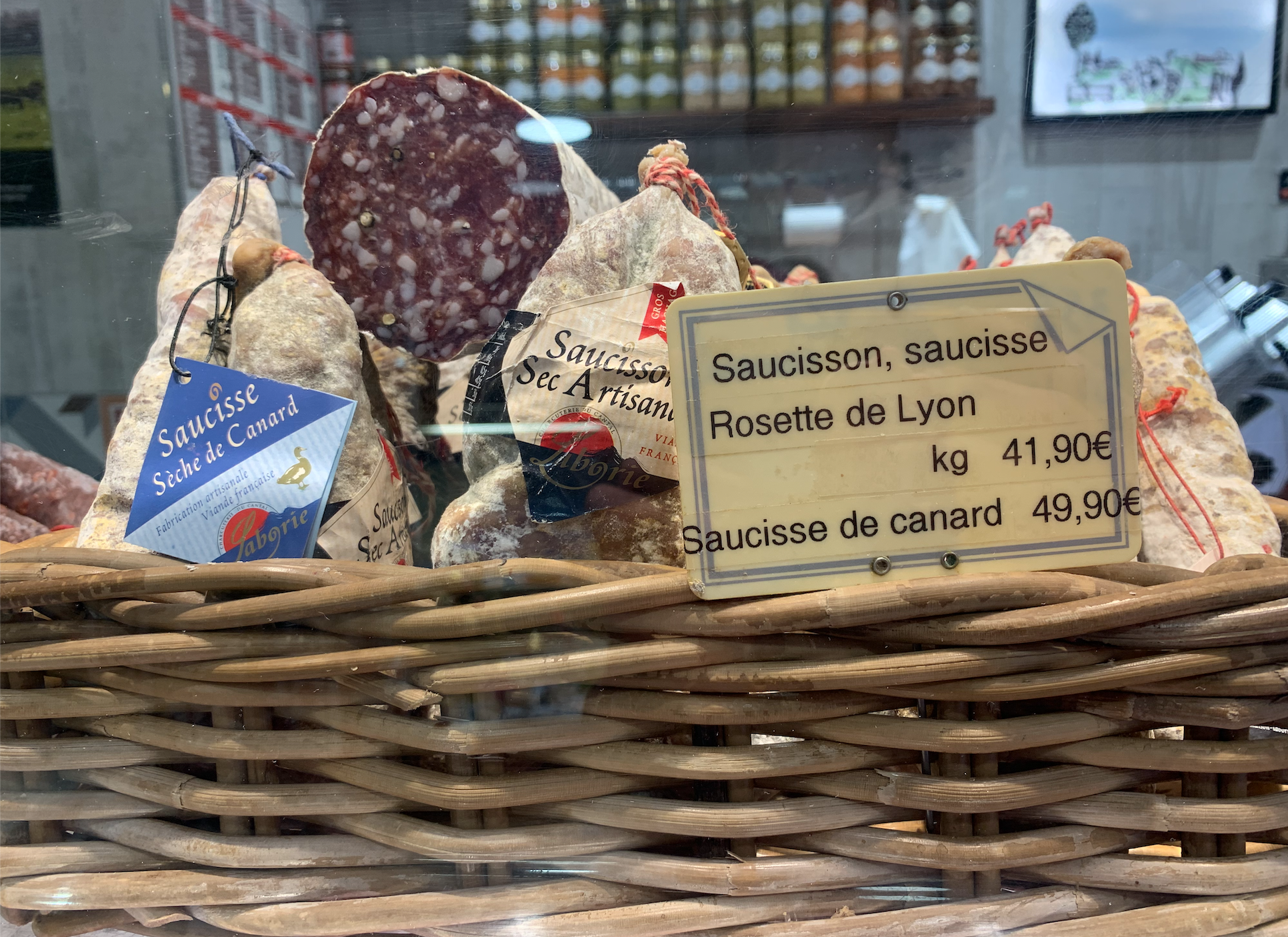 로제트 드 리옹 (rosette de lyon) : 프랑스에서 세 번째로 큰 도시 리옹(Lyon)의 명물. 돼지고기를 비계와 함께 잘게 다진 후 돼지 췌장의 끝부분을 케이싱으로 활용하는 덕분에 끝으로 갈수록 얇아지는 독특한 모양을 가진다.