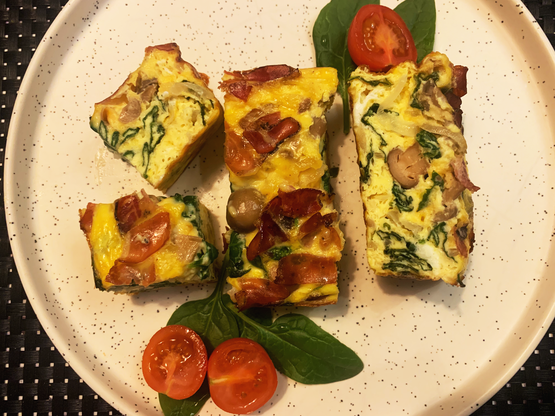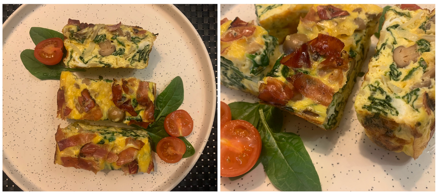개인적으로는 중간 사이즈 파운드 케이크 틀을 강추한다. 나중에 꺼내기도 편하고 모양도 예뻐서 딱 좋다. 케이크 틀이 따로 없다면 프리타타의 두께가 3 cm 정도는 나올 수 있을 정도로 지름 20 cm 가 넘지 않는 오븐용 그릇을 활용하면 된다. 너무 큰 그릇을 쓰면 프리타타가 일반 오믈렛처럼 얇아져서 아쉽고 너무 작고 깊으면 시금치와 베이컨이 들어간 계란찜이 되어버리니 적당한 크기의 그릇 선택에 심혈을 기울이시길.