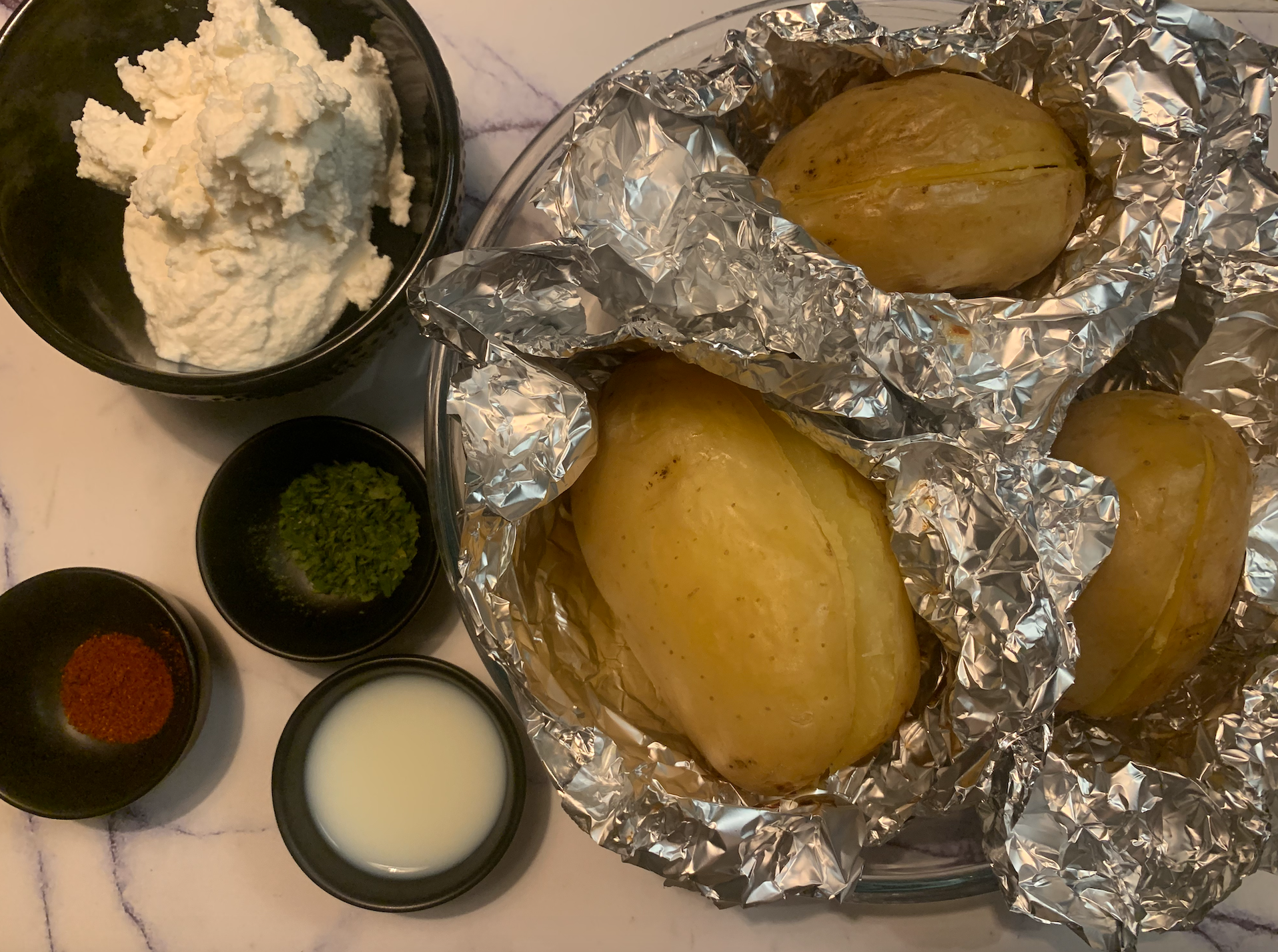 스테이크에 곁들이기 딱 좋은 매쉬드 포테이토, 버터 대신 훨씬 가벼운 착한 치즈 리코타를 가득 넣고 건강하게 만들어 먹자 !