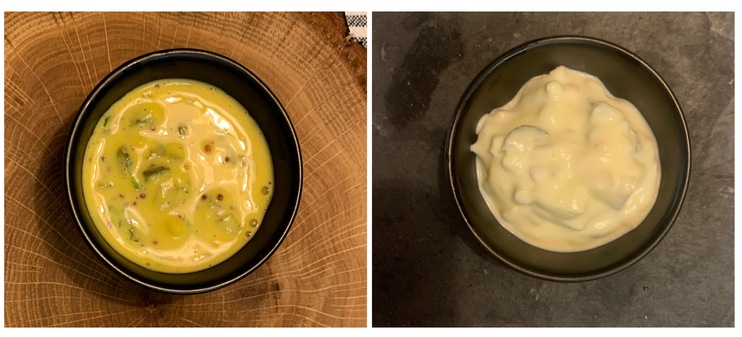 3. 나머지 식용류를 조금씩 넣어주면서 크리미한 제형의 마요네즈를 완성한 후