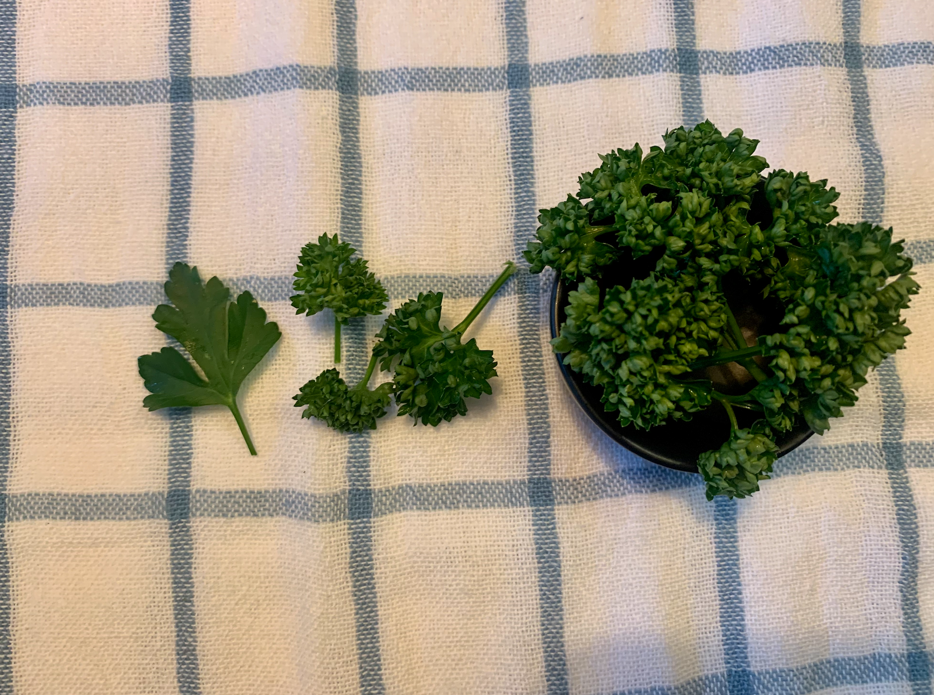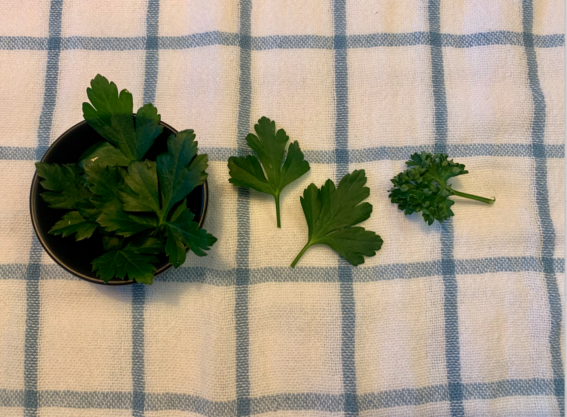 곱슬 파슬리보다 훨씬 부드러운 향을 가진 평평한, 일명 '잎 파슬리'. 잎사귀는 물론 줄기까지 먹을 수 있다.