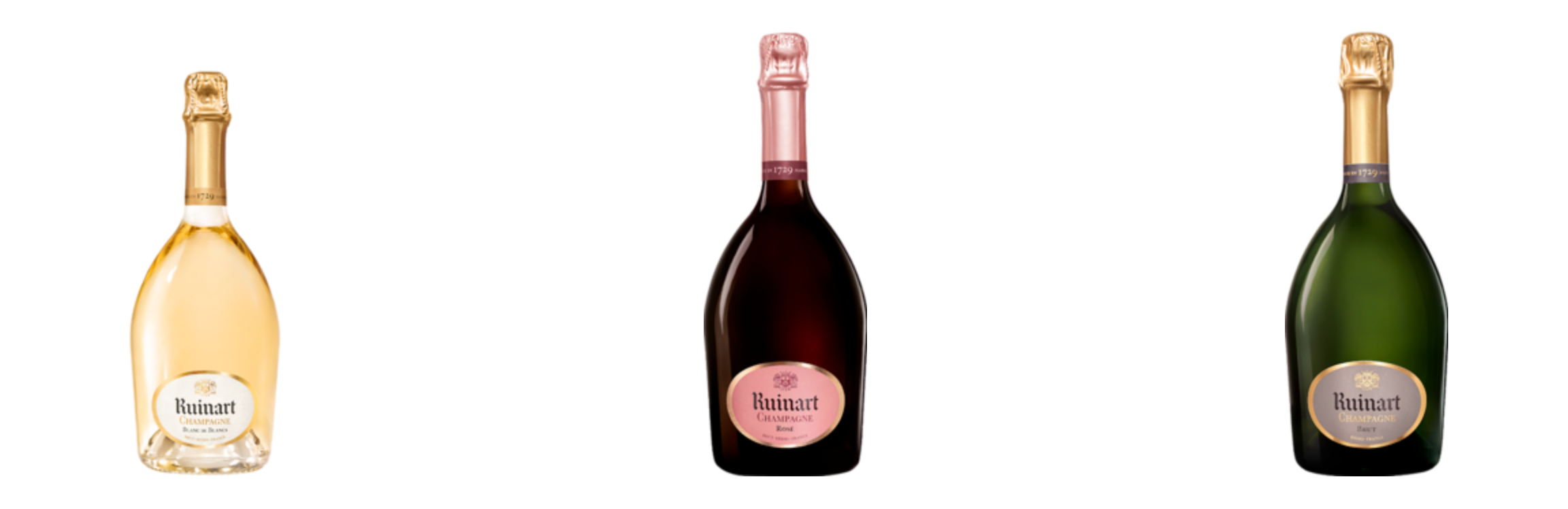 뤼나르 브뤼 (Ruinart brut) : 부드러운 균형이 인상적인 뤼나르 샴페인의 엔트리 라인. 정식 이름은 'R de Ruinart' 지만 프랑스에서도 그냥 뤼나르 브뤼라고 부르는 경우가 더 많다. 샤르도네 40% + 피노 누아 40-45 % + 피노 뮈니에 10-15 % 비율로 블랜딩 되며 사과, 살구 등의 상큼한 과일과 너트류 향기가 옅은 꽃 향기, 비스킷 향과 함께 느껴진다. 알콜 도수 12도.