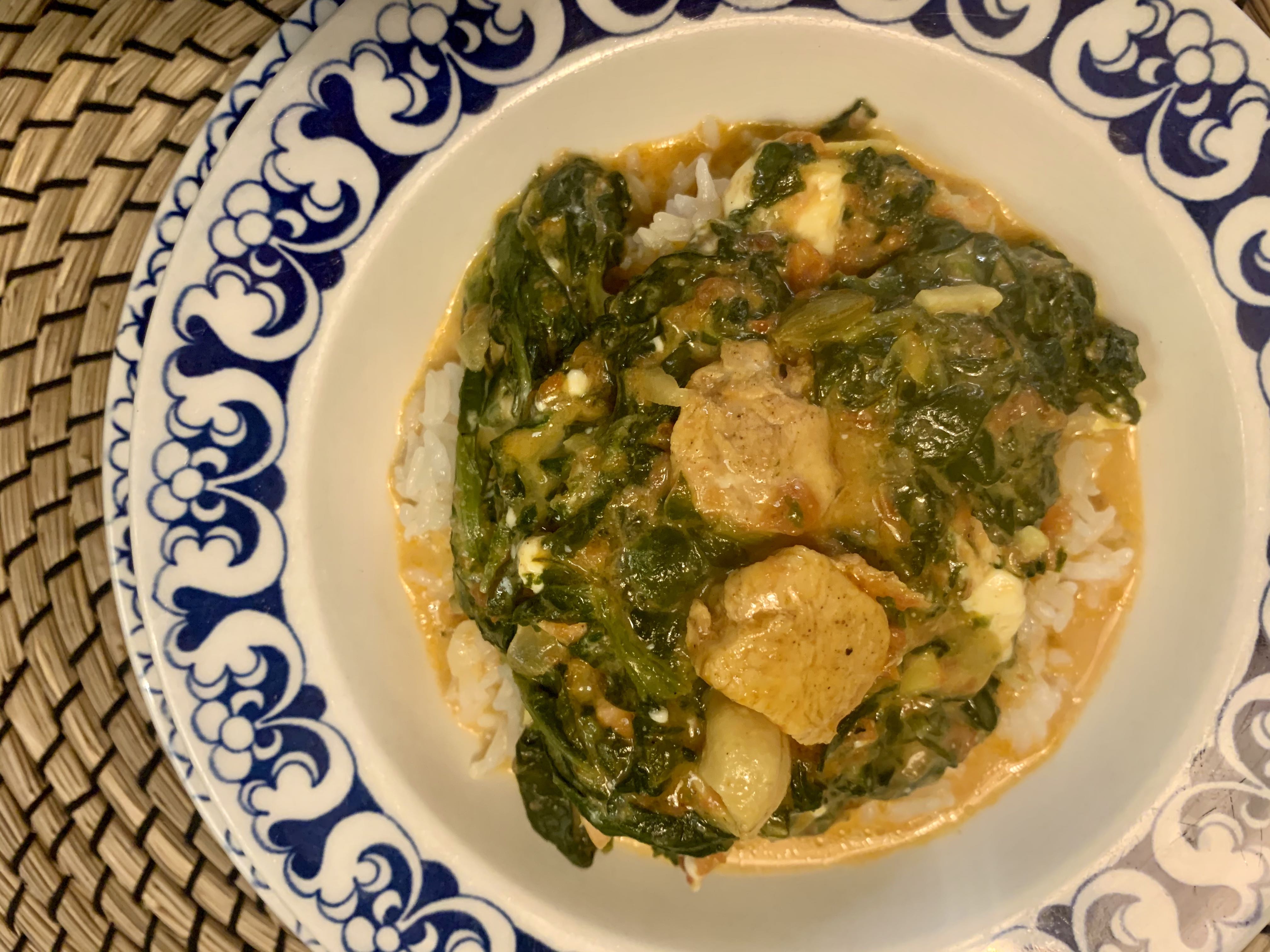 소복하게 담은 밥 위에 올려서 다양한 효능을 자랑하는 커큐민 가루와 부드러운 크림치즈 포션이 들어간 소박하지만 맛있는 인도 가정식 시금치 커리를 즐겨보자 !