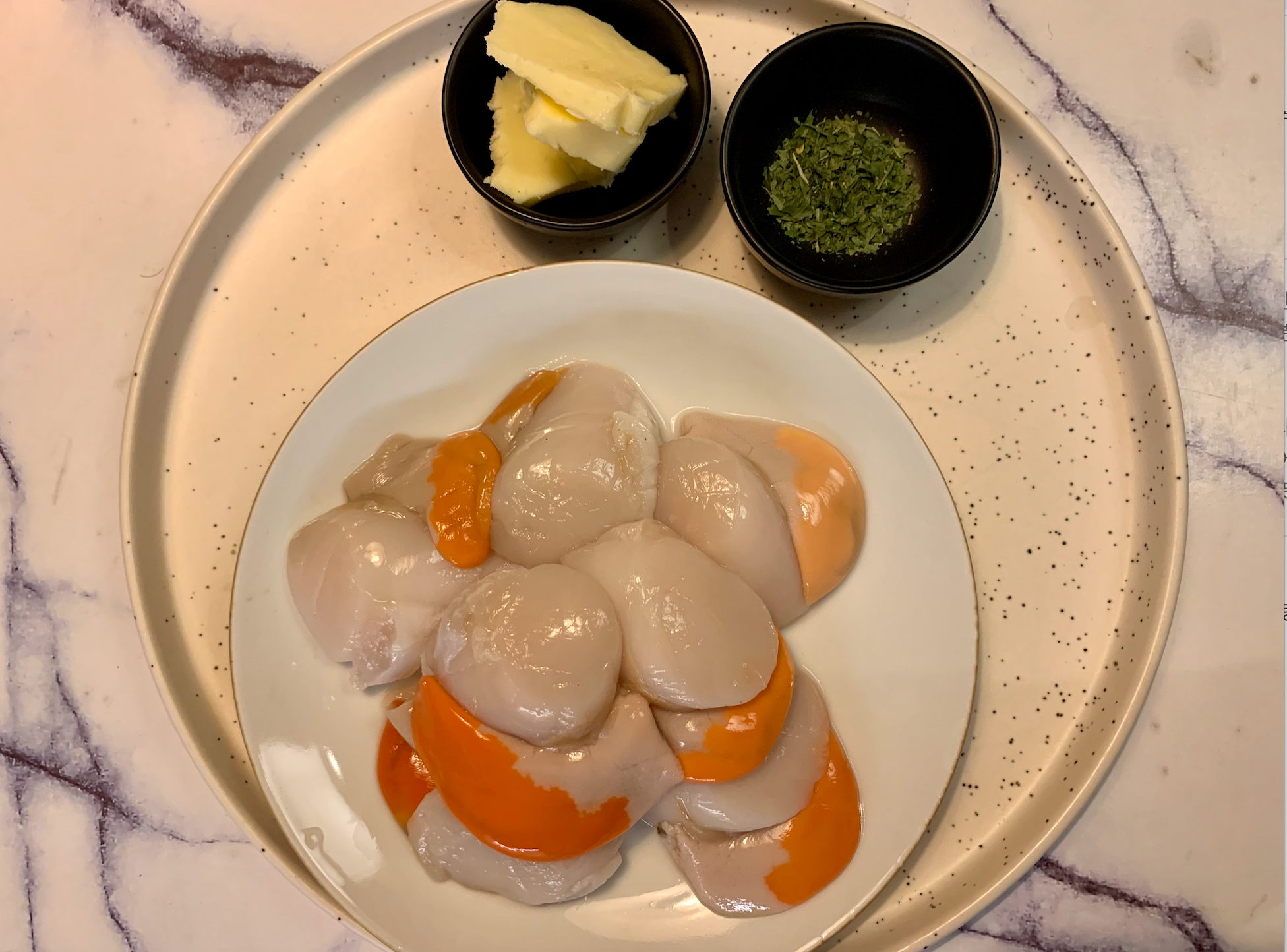 관자 스테이크, 로스팅한 버터로 맛있게 !