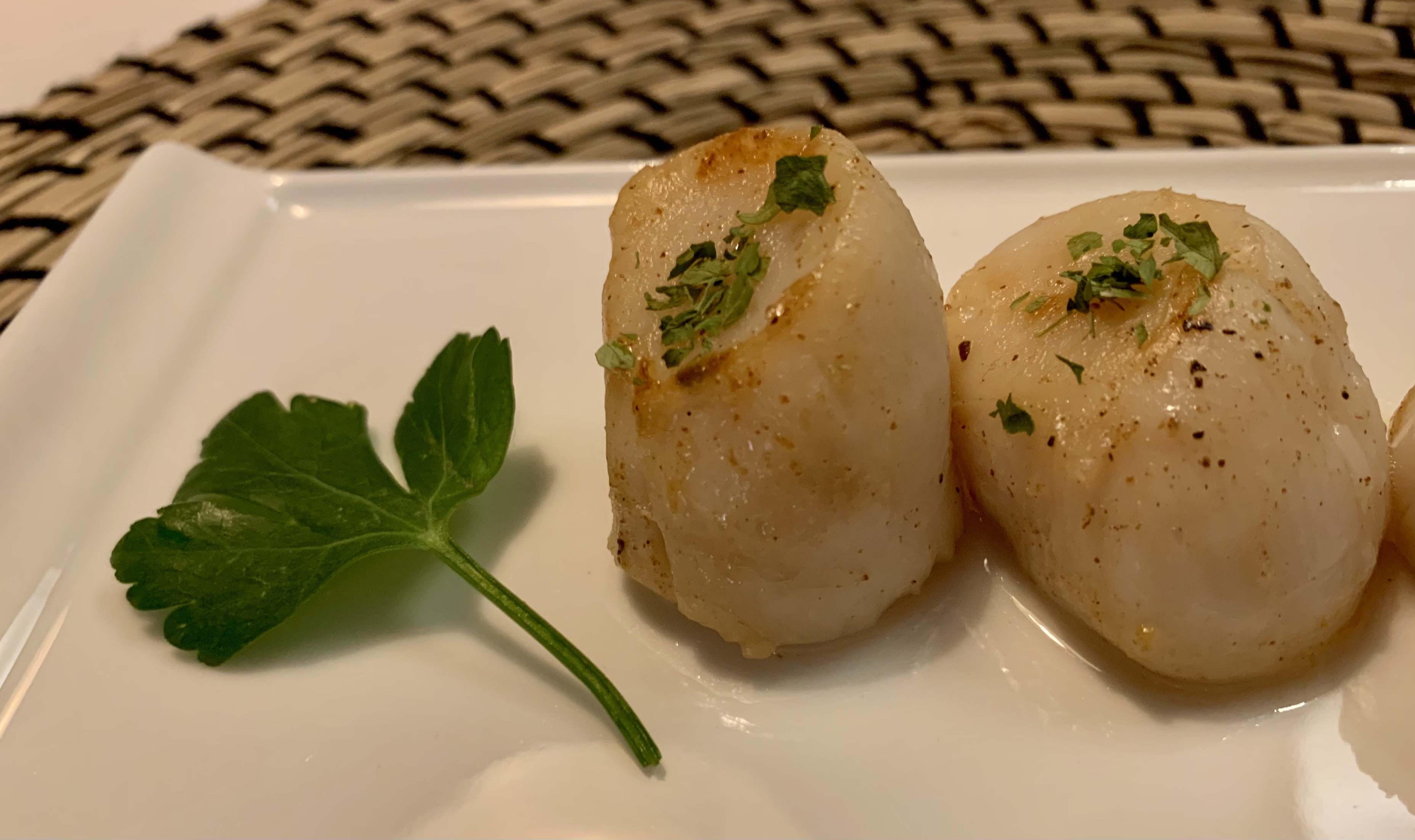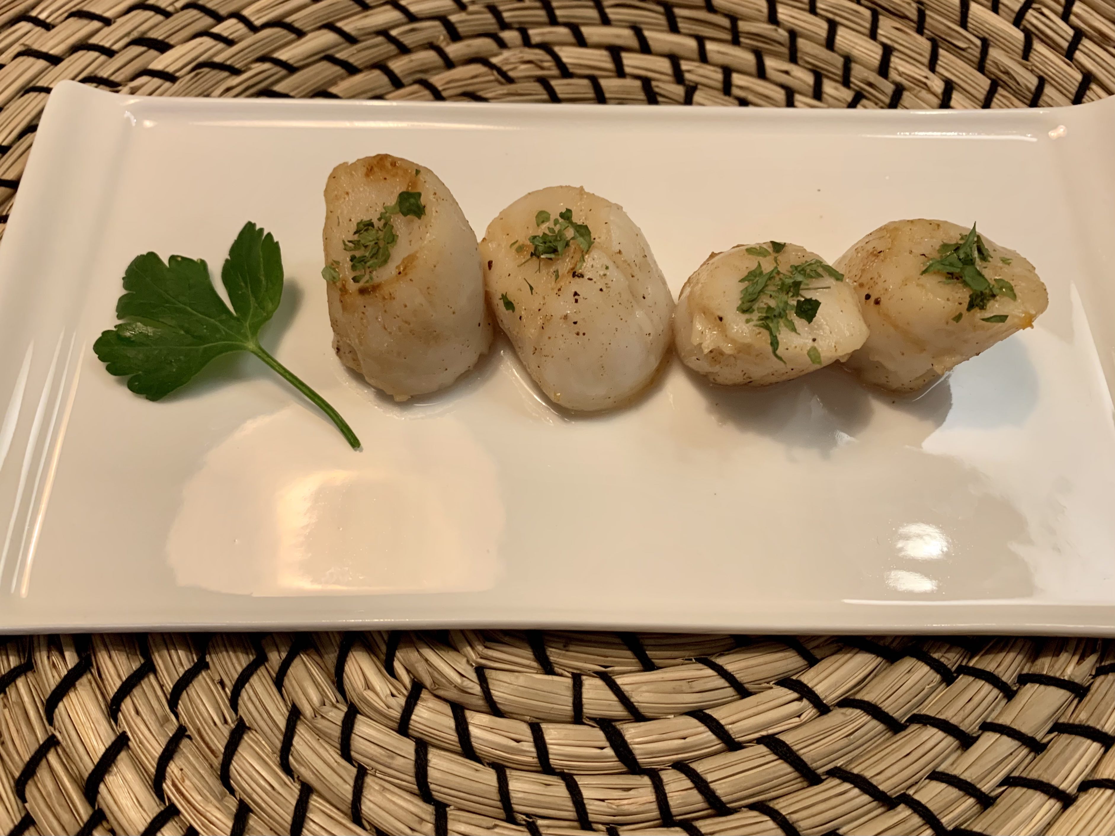 6. 이미 노릇노릇하게 로스팅된 버터에 구워져서 색감도 훨씬 예쁘게 입는다. 더도 말고 덜도 말고 윗면에 건파슬리만 조금 뿌려 로스티드 버터의 너트향을 머금은 담백한 관자의 참맛을 즐겨보자 !