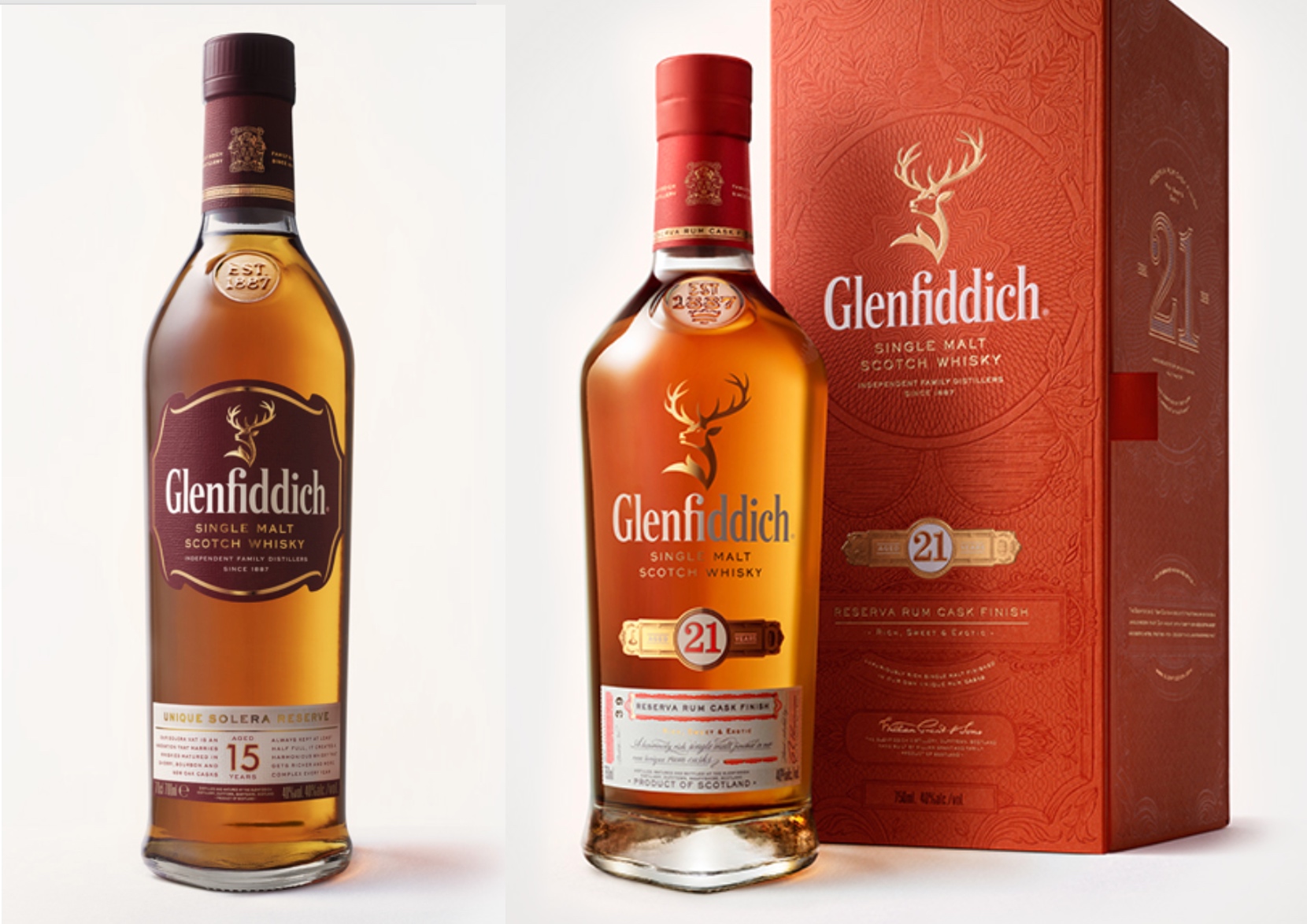 꿀, 향신료와 강한 과일향이 복합적으로 섞인 위스키. 전 세계에서 가장 많이 팔리는 싱글 몰트 위스키 10위 안에 항상 랭크될 정도로 두터운 마니아층을 가진 것은 물론, 전문가들에게서도 극찬을 받는 제품이다. 각각 세리 와인을 숙성시킨 세리 오크통, 버번위스키 제작에 쓰였던 버번 오크통, 글렌피딕에서 자체 제작한 새 오크통에서 숙성시킨 세 가지 원액을 포르투갈산 주정 강화 와인 마데이라(Madeira) 와인을 만들 때 쓰이는 솔레라(Solera) 기법으로 블랜딩해 항상 일정한 수준의 퀄리티를 유지하면서 얻어낸다.