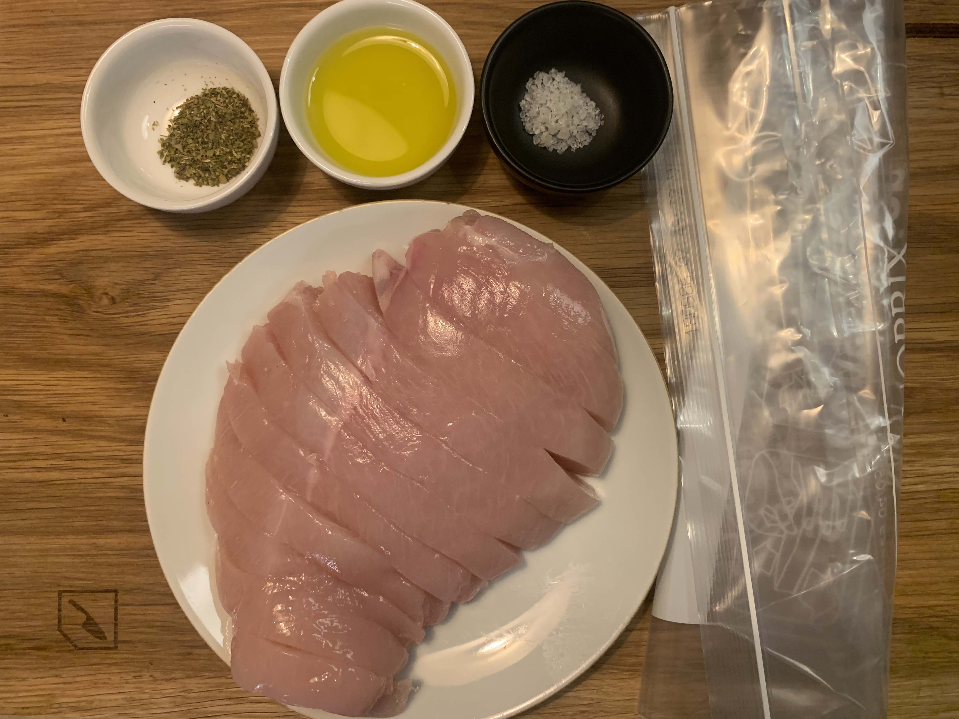 1. 지퍼백에 닭가슴살과 재료를 모두 넣고 양념이 고르게 섞일 수 있도록 지퍼백을 열심히 주물주물해준다.