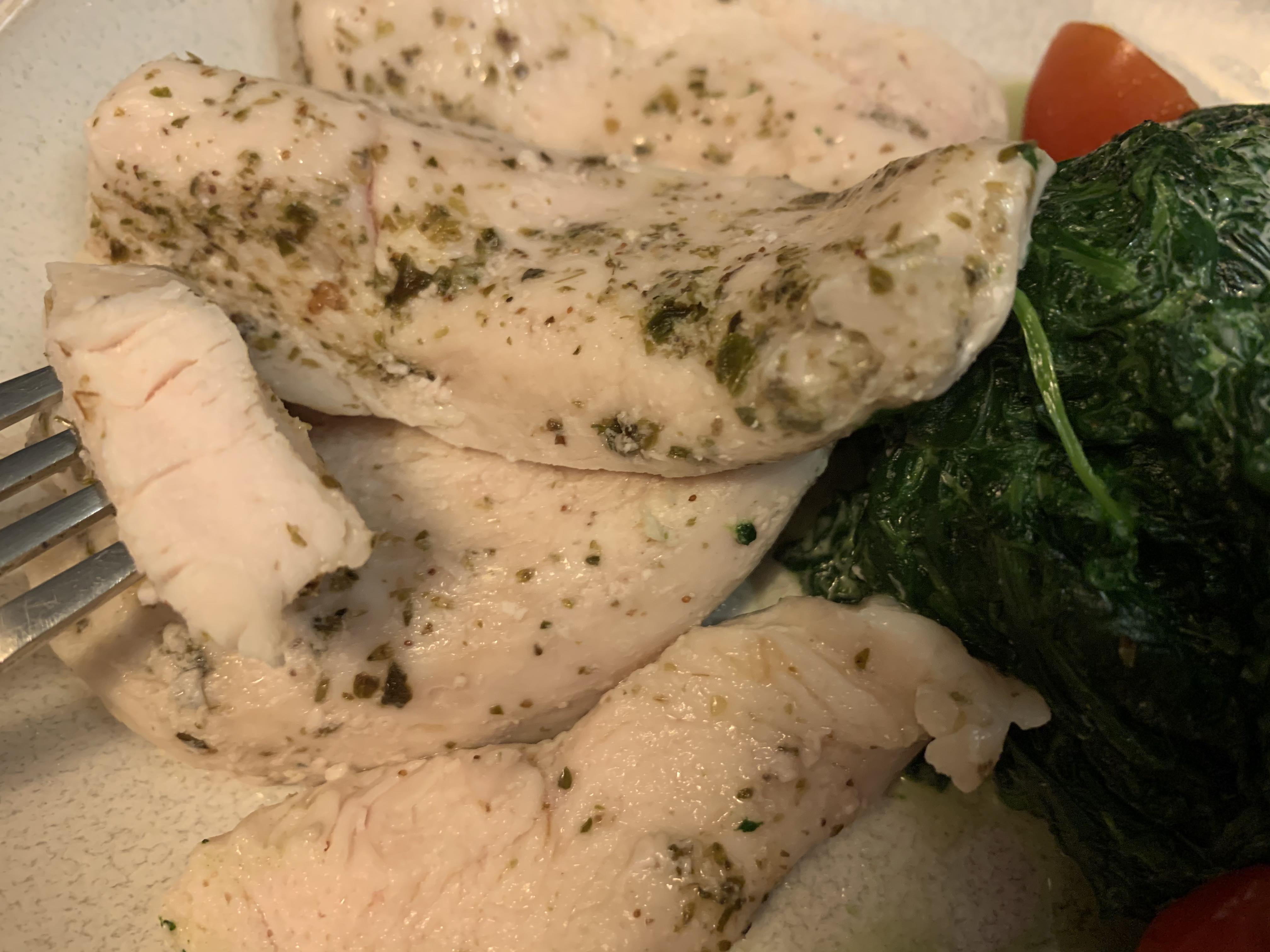 퍽퍽한 식감의 자리를 결이 안 보이는 부드러움으로 채워낸 수비드 닭가슴살은 언제나 옳다. 스테이크처럼 뜨겁게 먹어도 좋고 차갑게 식혀서 샐러드에 토핑처럼 올려서 제대로 다이어트식으로 즐겨도 굿 ! 불에 구웠을 때보다 살짝 분홍기가 도는 것처럼 보일 때도 있는데, 고기의 붉은색을 좌우하는 단백질 미오글로빈이 모두 분해되지 못해서 그런 거다. 그냥 먹어도 너무 괜찮지만 혹시 거슬린다면 이 상태로 오일 없이 팬에 잠깐 구워서 드시길 !