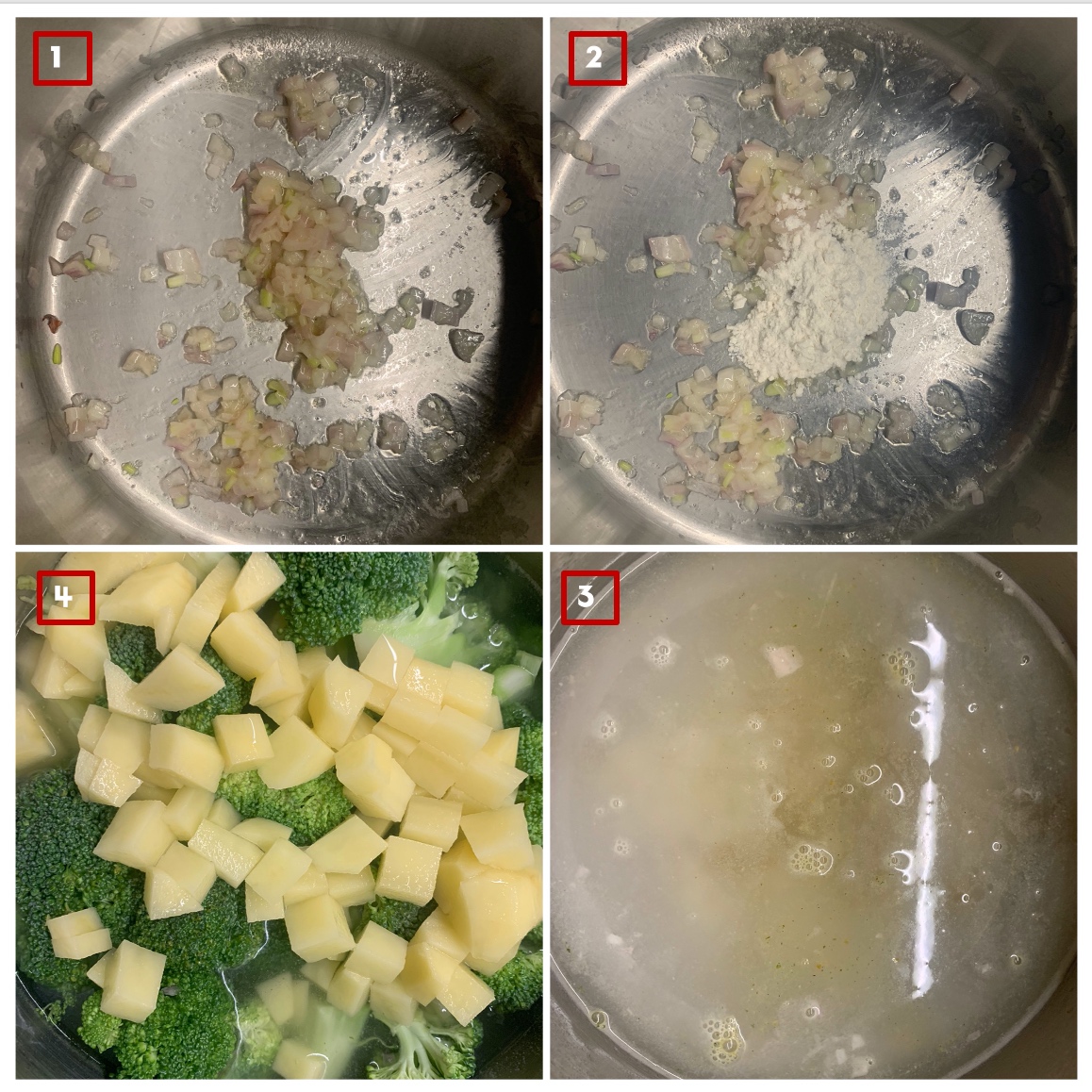 루는 수프의 적당히 되직한 농도를 맞추는 데 중요한 역할을 한다. 이 과정을 스킵하면 조금 더 묽은 재형으로 완성된다.
