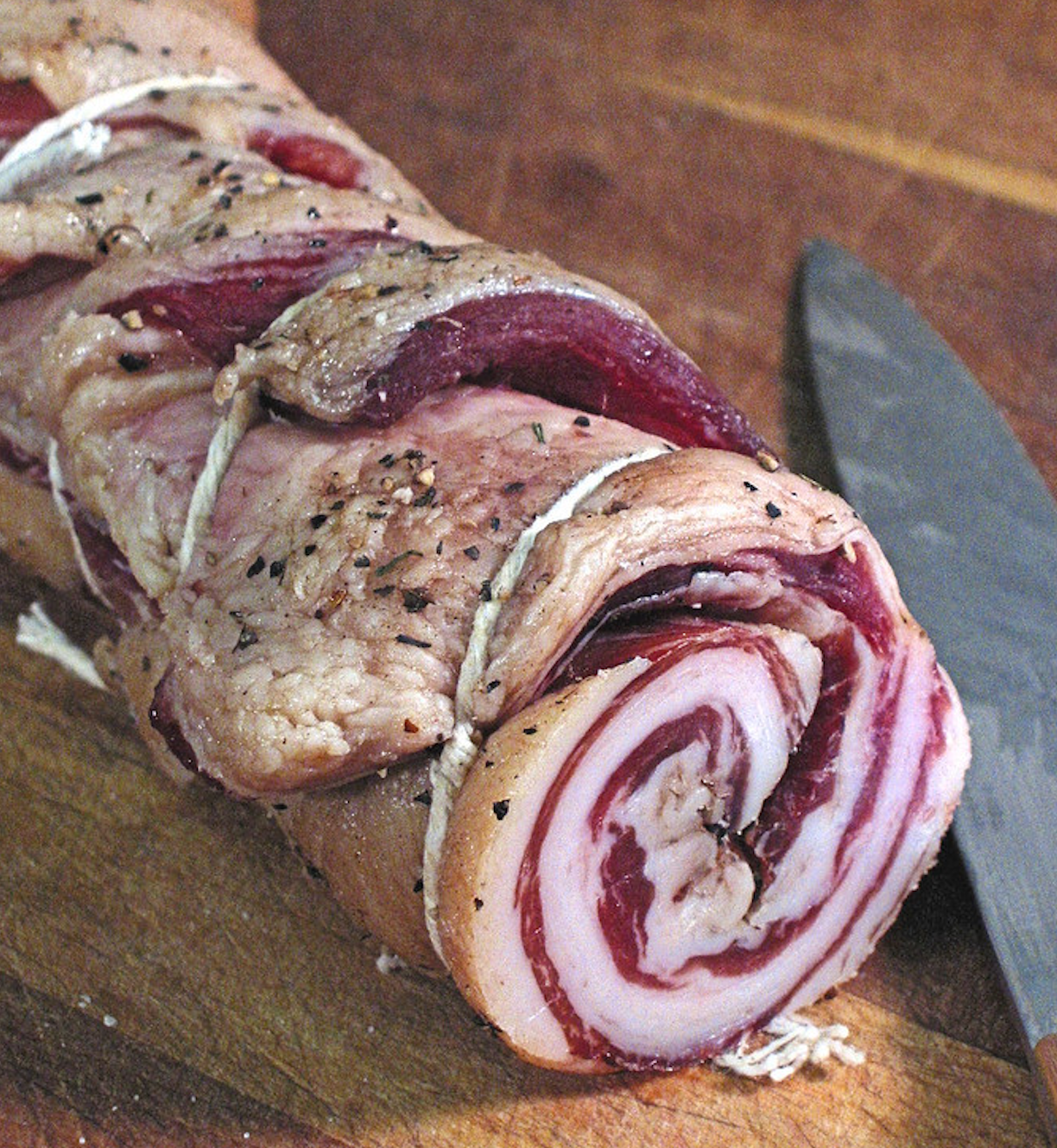 돼지 등 쪽 부위의 지방을 걷어서 단면에 마늘과 향신료를 듬뿍 발라놓은 대리석 상자에 소금과 로즈마리 등의 허브과 함께 넣고 최소 6개월부터 2년까지 정성스럽게 숙성시켜서 얻어낸다돼지비계 가지고 이럴 일인가 싶기도