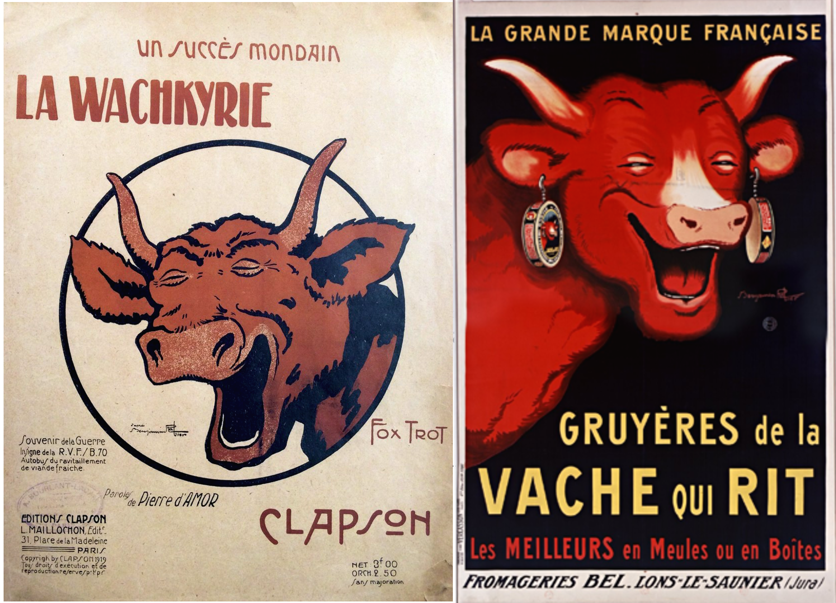 제대 후 새로운 치즈 브랜드를 론칭하면서 이 웃는 소를 떠올린 레옹 벨이정말로 본인이 직접 그려보려다가 실패하고원작을 그린 일러스트레이터 밴자민 라비에(Benjamin Rabier)에게 새로운 버전을 주문해서 완성된 것이 지금의 래핑 카우다. 치즈 상자 모양의 귀걸이를 달게 된 것은 소를 예쁘게 만들어주고 싶어했던 작가 부인의 아이디어라고.