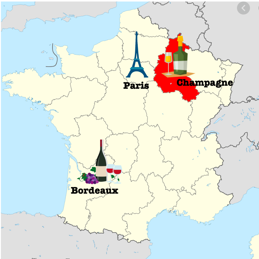 샴파뉴 지방에서 생산되는 스파클링 와인. 일반 와인처럼 AOC (Appellation d'Origine Controlée 원산지 품질 인증) 라벨과 함께 엄격하게 관리된다.