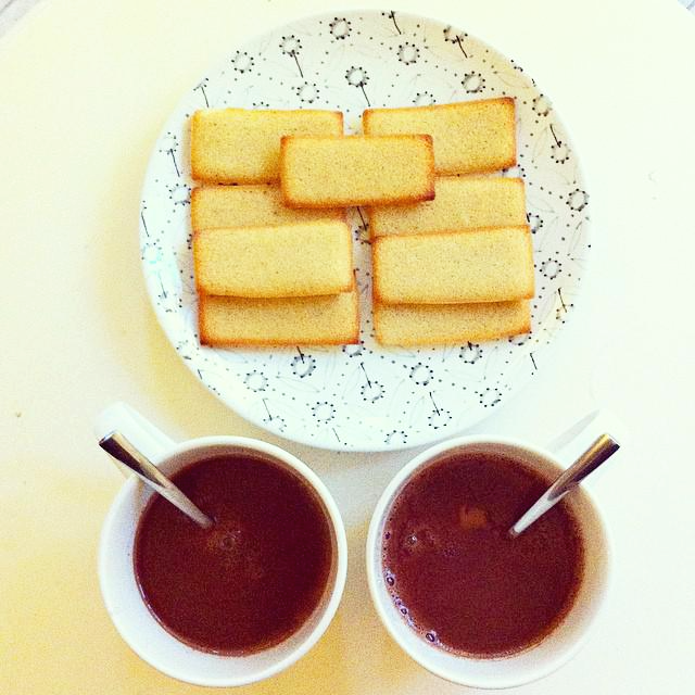 계란 흰자와 아몬드 가루, 버터를 넣고 구운 프랑스 출신 티 케이크.