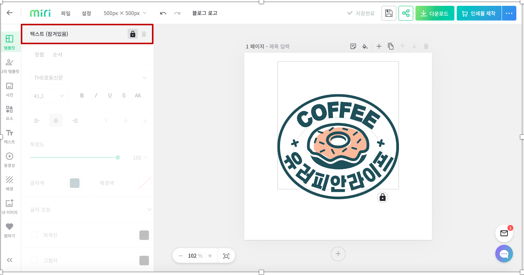 COFFEE를 아무리 클릭해도 텍스트 툴이 안 먹힌다고 당황 노노, 상단의 자물쇠를 누르면 잠김이 풀린다.