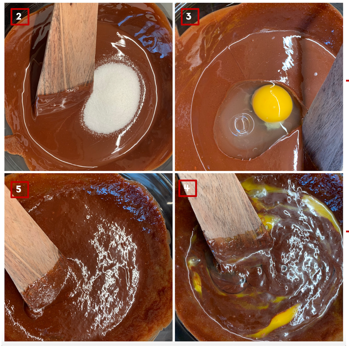 2. 설탕을 넣고 잘 섞어준 후, 중탕으로 초콜렛과 버터를 녹이는 과정에서 그릇이 뜨거워졌다면 잠시 식혀준다. 기다리는 동안 오븐을 210도로 예열해둔다.